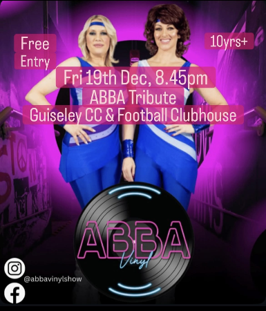 🎤 ABBA TRIBUTE ‼️ FREE ENTRY, NO TICKET REQ’D 🗓️ Friday 19th December, 8:45pm 📍 GUISELEY CRICKET & FOOTBALL CLUB ‼️ Mostly adult night however, 10yrs+ can attend but must be seated with adult not in & out of clubhouse